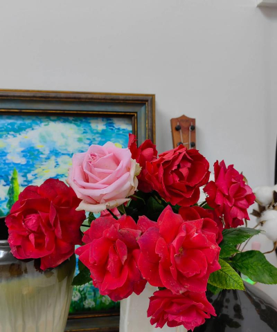通过以上方法,既能延长月季插花的观赏期,又能提升整体造型的艺术感。