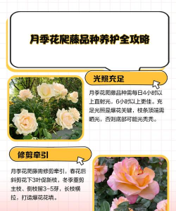 三季月季爬藤的养护需要结合光照、土壤、水分和修剪等方面,具体方法如下: 一、光...