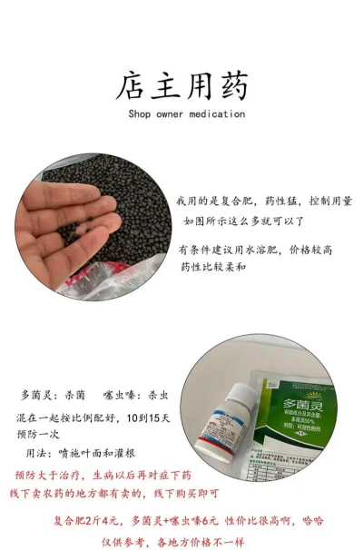 - 发现病虫害及时用药,如喷洒多菌灵等杀菌剂。