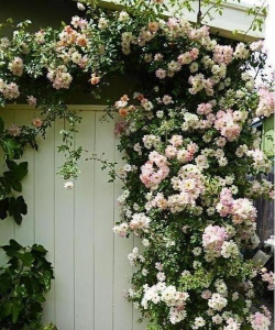 选择木质或金属支架,将花蔓引向支架攀爬。可用绑扎带或铁丝固定,确保花枝分布均匀。