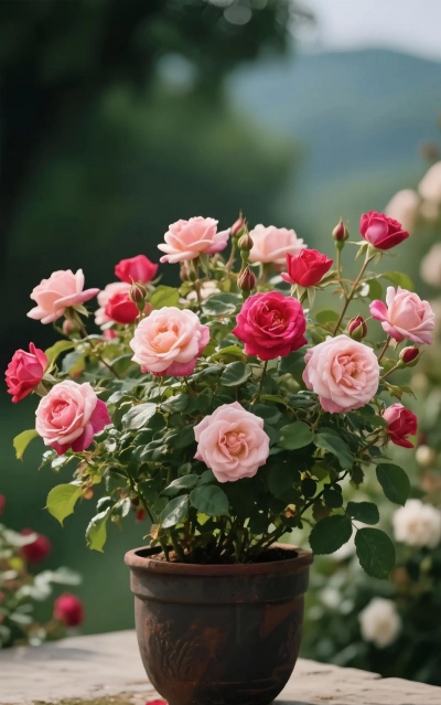盆栽两颗月季花的养护需要从土壤、光照、浇水、施肥、修剪和病虫害防治等方面综合...