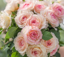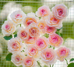 花型饱满且重瓣,单朵花直径约5-6cm,初开时呈杏橘色,逐渐转为粉红色,花瓣厚实有光泽,抗病性强。