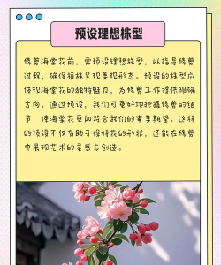 造型修剪:海棠短枝分化花芽,根据个人喜好和盆景的整体造型要求,对枝条进行蟠扎、扭曲等处理,塑造出独特的形态。