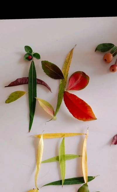 - 画几片不同形状的叶子组合在一起,如三角形、椭圆形和梯形拼接。