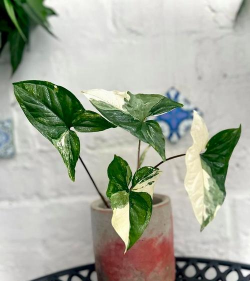 白锦合果芋价格便宜,每一片叶子上都有迷人的白色锦斑,每一片叶子的锦都是不一样的,特别惹人喜爱。