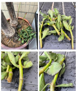 修剪下来的长寿花的茎,每一段起码有一两个以上的生长节点,生长节点就是它长叶子的位置,就是在节点的下方剪断剪下来的茎不要马上用于扦插,一定要先晾干伤口。
