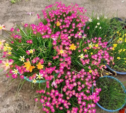 不同风雨兰品种,花朵的颜色大小和球根的大小都各不相同。