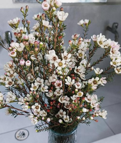 当然,澳洲腊梅更多的是作为鲜切花观赏,插在花瓶里放点清水,水浑浊了,定期换水,也可以观赏两个月以上。