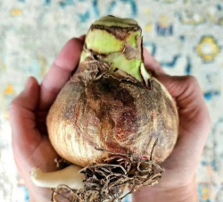 就比如第一年买回家的朱顶红种球如果根系长稳了,那抓住整个球,轻轻往上提一下,是有阻力的。如果没有阻力,那基本就是还没长根,这是一个测试是否长根的方法,但是建议不要经常碰它的球。