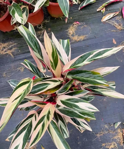 上面是三色卧花竹芋(Stromanthe sanguinea 'Tricolor')