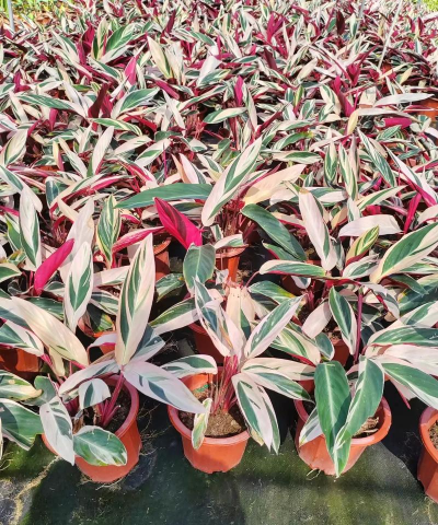 七彩竹芋是很受花友们喜爱的,因为它的叶片上有着深绿色,浅绿色和白色相间的斑纹,叶子上有时甚至会显现出粉色的斑纹,很是出彩。