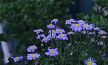 在蓝色系的草花里面,蓝玛格丽特(简称蓝玛)是特别清新脱俗的,它还有花叶的品种(花叶蓝菊:Felicia amelloides 'Variegata'),开花性好,容易开花花期长,且价格便宜。