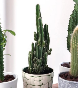 万重山(学名:Cereus 'Fairy Castle')最大的特点就是它会长非常多的分枝,它的茎重重叠叠地长到一堆,看起来就像山峰一样。它也会浑身长满尖刺,但是它的刺是比较短的。它基本是不开花的。