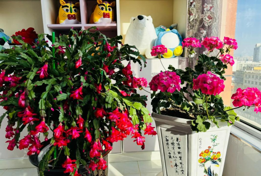 盆栽蟹爪兰不喜欢强光直射,喜欢充足的散射光,养在朝东的窗台或阳台就是很不错的选择,若是光照充足的朝南或朝西阳台,则注意再夏秋高温季节适当遮阴,特别是温度高于30度以上之后,光照太强会灼伤它的叶子。