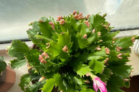 蟹爪兰喜欢充足的散射光,在天气凉快的秋冬季节可以略微增加阳光,有助于它形成花芽。