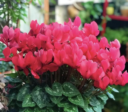 仙客来是冬天花市里的“性价比之王”,几块钱到十几块钱就能买一盆,一点不心疼。它的花色特别丰富,粉的、红的、白的都有,花型还很别致,花瓣翘起来像小兔子的耳朵,叶子上带着好看的纹路,整体透着股活泼劲儿,摆家里特别讨喜。