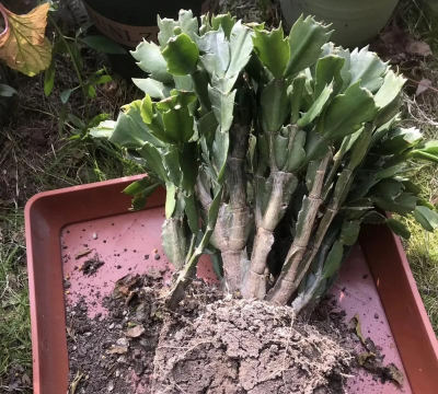 蟹爪兰的根系特别弱,没什么主根,细得跟头发丝似的。去年我用纯园土种它,结果盆土硬得像块砖头,浇水大半天都渗不下去。后来脱盆一看,根系已经烂了大半,别提多心疼了。