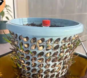 姑娘回复:“喝水还挺多,两三天浇一次就行,长得也快,种五天就冒小芽,半个月就能割头茬!”还有人好奇:“中间插个饮料瓶干啥用?”她解释:“扎了小孔方便浇水,能让水慢慢渗进土里。”