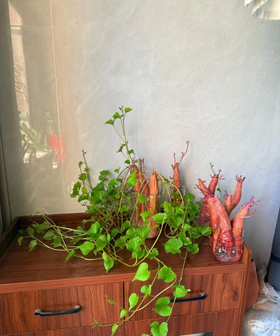 4.红薯:随手丢瓶里,长成“垂吊绿植”