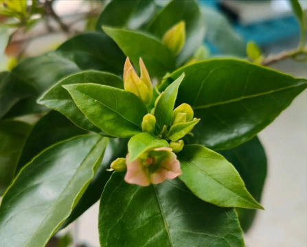 它开花离不开充足的阳光和适宜的温度,北方温室冬天想让它开花,必须保证光照够。花芽要么长在老枝顶端,要么藏在新梢叶腋里,花芽刚冒出来的关键时期,绝对不能剪枝,剪了就没花可看了。