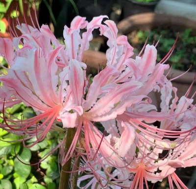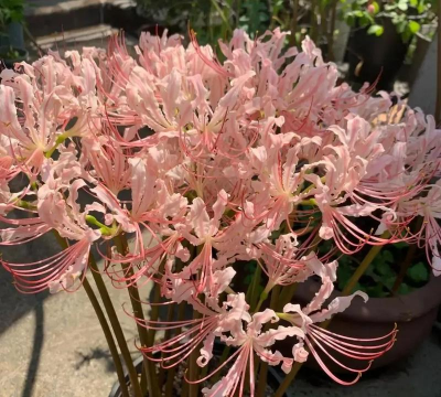 后来查了资料才弄明白,大家说的“彼岸花”其实是石蒜花里开红花的品种,而大哥养的这盆粉色的,名字叫“赤雪”。