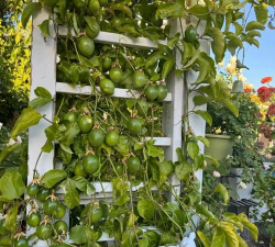 它的花也很特别,一朵花只开一天,下午就会凋谢,但一棵百香果能断断续续开几个月,边开花边结果,既能吃又能看,做观赏盆栽再合适不过。