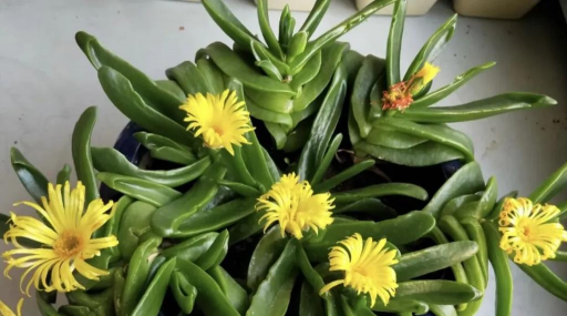 3.佛手掌:像片“胖舌头”,窗台摆着讨喜,开花像小星星,7天浇次水就行