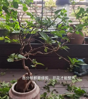 这时候必须中度修剪,不然到了冬春花期,开花又少又散,没什么观赏价值。