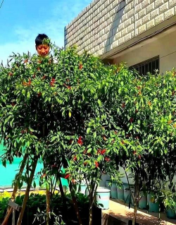 小伙说,这辣椒树其实没那么难养,他刚开始也是随便种的,后来发现只要根养得壮,就能年年结果。