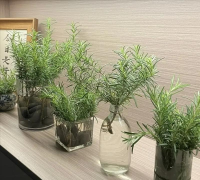 更方便的是,迷迭香特别容易繁殖。剪一段10厘米左右的枝条,去掉下面的叶子,插在湿润的沙土里,浇点水,放在散光处,用不了半个月就能长出新根。用不了多久,就能从一小枝养满一大盆。