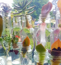 把它放在温暖的地方,别冻着,大概两到三周就能生根,就算一直水培,也能长得很独特,摆在桌面特别亮眼。