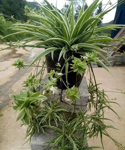 比如常见的吊兰,会生长出匍匐茎,匍匐茎末端会萌发小侧枝。可以用U型针、压苗器或其他工具,将这些小侧枝压入土壤中,后续正常浇水(遵循“土壤干透浇透”的原则)。等小侧枝长出根系、生长稳定后,将连接侧枝与母体的匍匐茎剪断,就能得到新的植株。