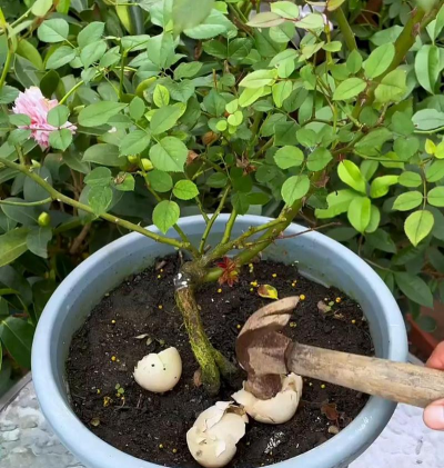 这个是非常好的有机肥,它干净也好用,把鸡蛋壳清洗晾干一下,轻轻揉碎了,就可以直接放入花盆里面,掺入到盆土里面了,不需要发酵腐熟,很好用。