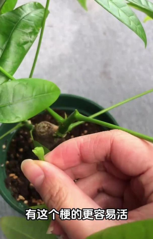 想要养发财树,我们只需要剪下一个叶片,带梗的叶片,然后泡在水瓶子里面,放在阴凉通风的地方。