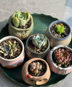 组合盆栽:多个小型花盆拼成一组,适合室内空间利用。