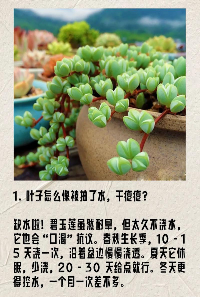 注意: 碧玉多肉对水敏感,尤其是夏天高温时,容易因浇水不当导致根部腐烂。