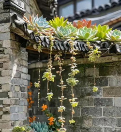 将多个瓦片拼接成一个立体结构,比如“瓦片墙”或“瓦片花架”,用来种植多肉。