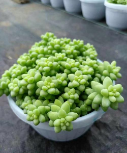 形态:茎细长,叶片呈圆柱形或卵形,排列成串,如珍珠般垂吊生长