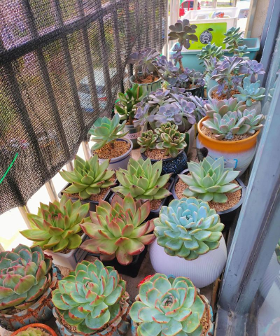 使用方法:在多肉上方覆盖一层50%~70%遮光率的遮阳网,可以有效降低光照强度和温度。