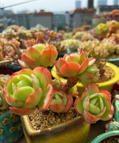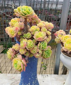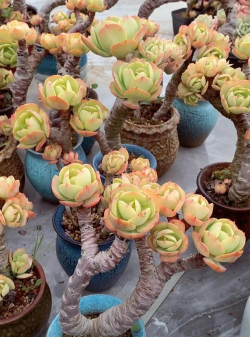 外观:枝条较粗壮,叶片肥厚,颜色多为绿色或带粉红,开花时非常美丽。