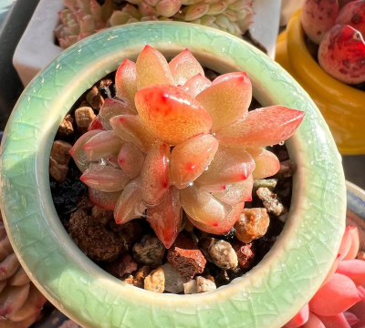 “粉莲”是多肉植物中的一种,学名可能为 Echeveria 'Pink Lady' 或类似...