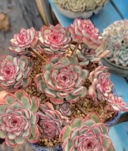 | 虹之玉(Echeveria 'Perle von Nürnberg') | Echeveria spp. | 叶片呈淡粉红色,叶缘有白色绒毛 |