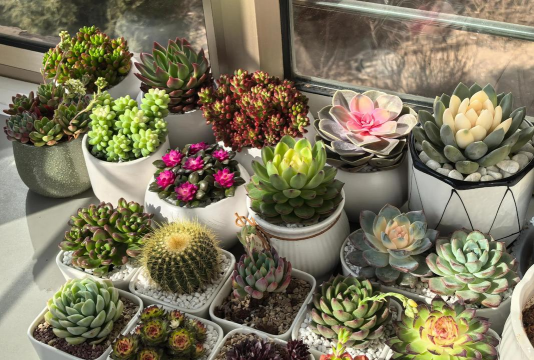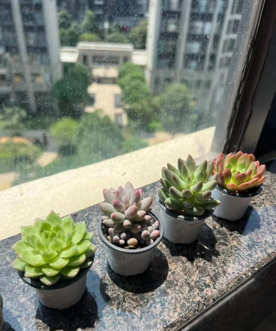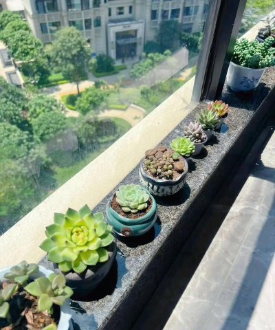 多肉植物喜欢阳光,南向或西向窗台是理想位置。