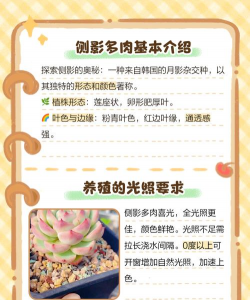 “侧影多肉”通常指的是景天科多肉植物中的一种,外形具有独特的侧影美感,比如像“侧影”这种名字的品种,可能是指像玉缀(Echeveria 'Crimson')、虹之玉(Echeveria 'Lola')、蓝雪花(Echeveria 'Blue Star')等叶片呈莲座状、颜色鲜艳、形态优美的多肉品种。它们因为叶片排列整齐,从侧面看有独特的视觉效果,所以被称为“侧影多肉”。
