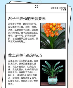 君子兰是一种观赏价值高且具有净化空气功能的植物,其养殖方法需从土壤、光照、温度、水肥管理及病虫害防治等多方面综合把控。以下是基于权威资料的详细养殖要点:
