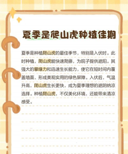 春季:春季是种植爬山虎的最佳季节,特别是在4-5月份之间,此时温度适宜,有利于爬山虎的生长和成活。