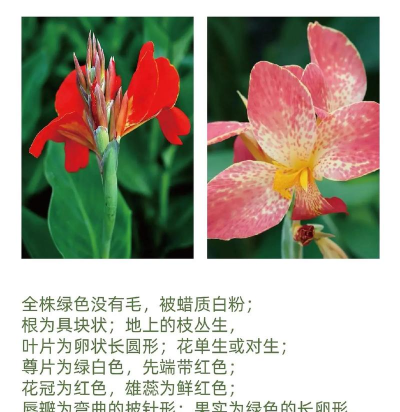 此外,美人蕉的花色丰富多样,包括红色、橙色、黄色、白色等,有的花朵上还有斑点。