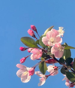颜色与花蕊:梨花同样是白色,并且也是成簇开放,而它最大的不同就是花蕊上的花药是红色或紫色的。