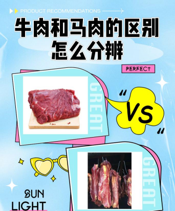 马肉和牛肉在多个方面都有所不同,包括味道、营养成分、烹饪方式、文化背景等。以下是一些主要的区别: