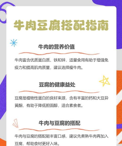 为了获得全面的营养,可以将豆腐和牛肉合理搭配食用,例如: